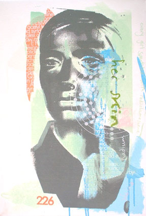 Acrylic, painted & screenprinted, glow-in-the-dark paint on canvas. Video performance piece / soundtrack available to view on You Tube